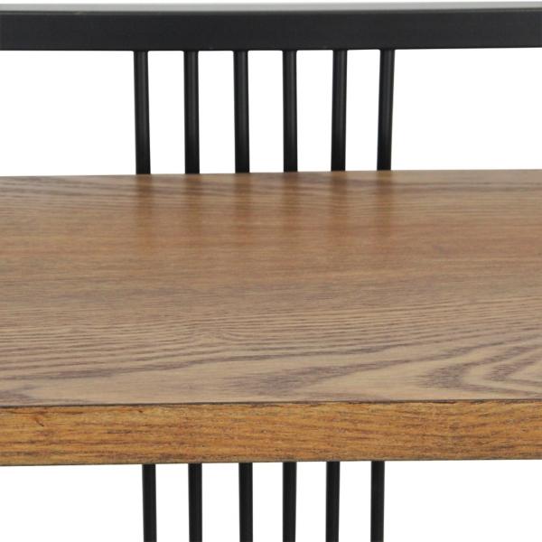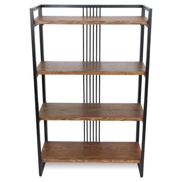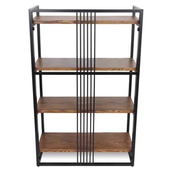 Create a beautiful showcase of books, picture frames, and decorative accessories with the 4-Tier Black Metal Frame Shelf. Mixed materials, vertical rod accents, and a two tone finish give it a modern-industrial look! Overall shelf measures 29.75L x 13.75W x 47.25H in. Shelves measure 11.25 in. in depth Handcrafted of wood composite and metal Black metal frame finish Brown wood grain finish on shelves Vertical rod backing Weight: 35 lbs. Weight capacity: 10 lbs. per shelf Assembly required; easy assembly Not intended for commercial use Care: Dust with a soft, dry cloth. This item is available at Kirklands.com only, not available in stores. Please note: this item cannot be shipped to APO/FPO addresses. WARNING: Cancer and Reproductive Harm - For more information go to www.P65Warnings.ca.gov.
