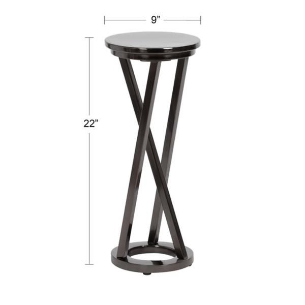 This Allie Pewter Metal Cocktail Table incorporates simple yet stylish geometry into its design. It's perfect for displaying a small lamp, charging your phone, or serving cocktails on coasters. Table measures 9H x 22 in. in diameter Crafted of metal Pewter finish Round shape Features a geometric base Weight: 6.47 lbs. Weight capacity: 7 lbs. Assembly required Not intended for commercial use Care: Wipe with a soft, dry cloth. This item is available at Kirklands.com only, not available in stores. Please note: this item cannot be shipped to APO/FPO addresses.