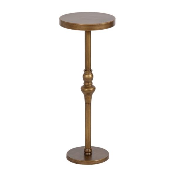 Bring a refined, sophisticated accent to your home with the Antique Gold Metal Stratton Cocktail Table. This chic, vintage-inspired accent table features a traditional pedestal base with a round tabletop. Cocktail table measures 22H x 8.5 in. in diameter Crafted of metal Painted antique gold finish Round shape Features an ornate turned metal base Weight: 6 lbs. Weight capacity: 7 lbs. Easy assembly required Not intended for commercial use Care: Wipe with a soft, dry cloth. This item is available at Kirklands.com only, not available in stores. Please note: this item cannot be shipped to APO/FPO addresses.