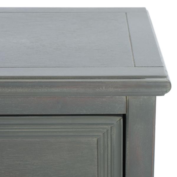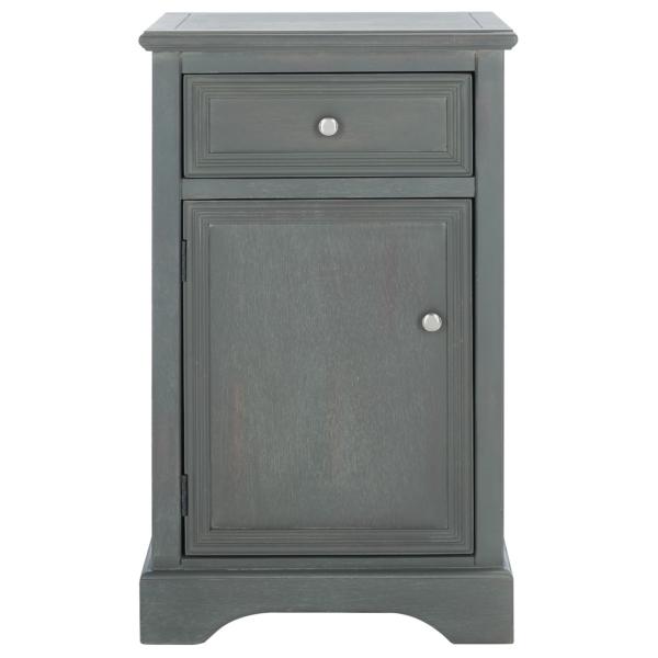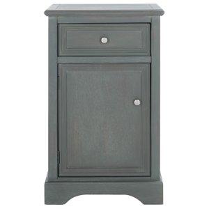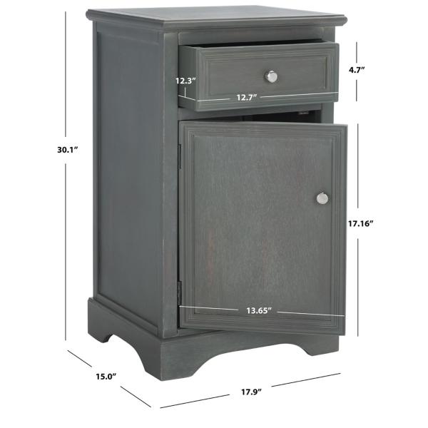 Traditional decor gets a relaxed French country update in the Ash Gray Wood Mita Storage End Table. With its top drawer and lower cabinet space in elm wood, this table offers ample storage in the living room or bedroom. End table measures 17.9W x 15D x 30.1H in. Crafted of wood Distressed gray finish Features one (1) drawer and one (1) cabinet Silver metal hardware finish Drawer measures 12.7W x 4.7D x 12.3H in. Cabinet measures 13.7W x 12.7D x 17.2H in. Weight: 26.4 lbs. Weight capacity: 35 lbs. No assembly required Not intended for commercial use Care: Wipe with a soft, dry cloth. This item is available at Kirklands.com only, not available in stores. Please note: this item cannot be shipped to APO/FPO addresses.