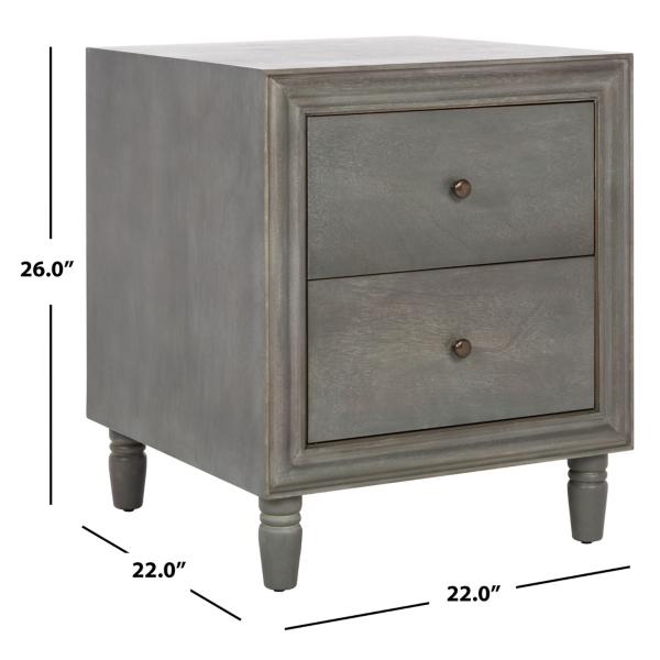Both rustic and elegant, the Ash Gray Wood Polly 2-Drawer End Table is the best of both worlds. Its sturdy elm construction, ash gray finish, and two ample drawers make it the perfect place to store the essentials! End table measures 22W x 22D x 26H in. Crafted of elm wood Rustic gray finish Features two (2) drawers Square shape Carved details Drawers measure 17.3W x 19.7D x 8.3H in. Weight: 40 lbs. Weight capacity: 35 lbs. Assembly required; see Info & Guides in the drop down below to view or print assembly instructions Not intended for commercial use Care: Wipe with a soft, dry cloth. This item is available at Kirklands.com only, not available in stores. Please note: this item cannot be shipped to APO/FPO addresses.
