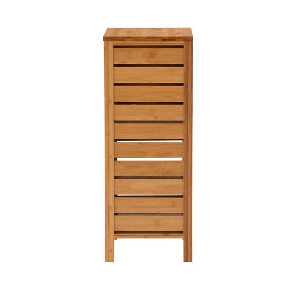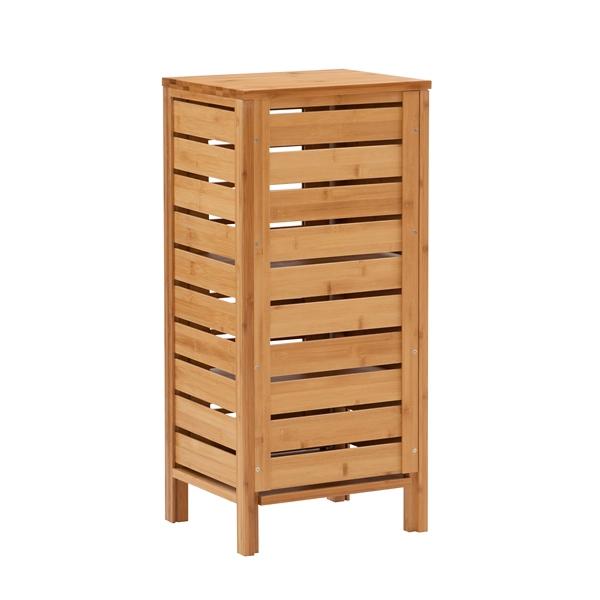Add our natural finished Bamboo Sumter Cabinet in your bathroom to complete your designed look. Its three sturdy shelves make for the perfect storage piece. Cabinet measures 13L x 11W x 28H in. Crafted of bamboo Natural finish Includes three (3) shelves for storage Some assembly required Not intended for commercial use Care: Dust with a soft, clean cloth. This item is available at Kirklands.com only, not available in stores. Please note: this item cannot be shipped to APO/FPO addresses.