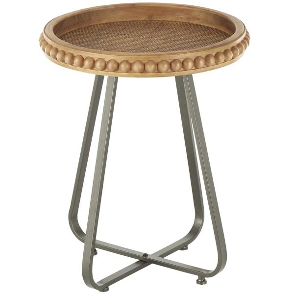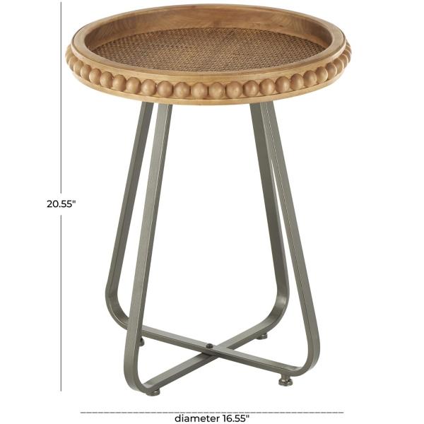 Give your space a boho chic touch with this Beaded Wood Rattan Round Accent Table! Featuring a unique blend of materials and eye-catching details, this table is perfect for accenting your home. Accent table measures 20.55H x 16.55 in. in diameter Crafted of rattan, iron, fir, and MDF Brown wood and silver metal finish Features a beaded edge Woven rattan tabletop Weight: 6.1 lbs. Weight capacity: 100 lbs. No assembly required Not intended for commercial use Care: Dust with a soft, dry cloth. This item is available at Kirklands.com only, not available in stores. Please note: this item cannot be shipped to APO/FPO addresses.