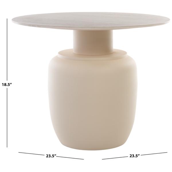 The Beige Ceramic Bella Modern Accent Table flaunts a simple yet sculptural look that creates a focal point in any space. Its light, neutral hue and rounded silhouette will seamlessly blend with your decor. Overall dimensions Width: 23.6 in. Depth: 23.6 in. Height: 18.5 in. Crafted of ceramic and iron Beige finish Marble-like finish Rounded base Weight: 19.6 lbs. Weight capacity: 5 lbs. No assembly required Not intended for commercial use Care: Dust with a soft, dry cloth. This item is available at Kirklands.com only, not available in stores. Please note: this item cannot be shipped to APO/FPO addresses.