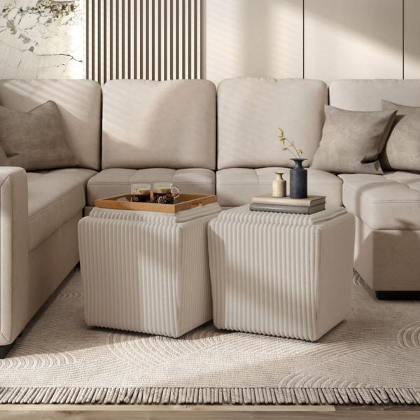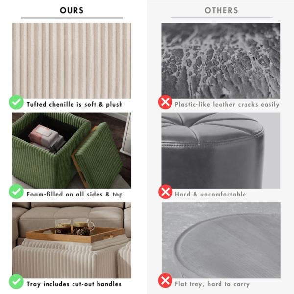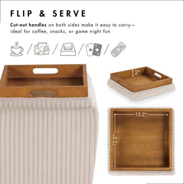 The Beige Corduroy Square Storage Ottoman is great for when you need to relax or quickly stuff away a blanket! Its textured fabric will look so comfy in your living room. Overall dimensions Width: 16 in. Depth: 16 in. Height: 17 in. Crafted of solid wood Beige finish Upholstered in corduroy fabric with poly foam fill Rectangle shape Features a flip top with removable storage space Storage space measures 14.3L x 14.3W x 10.6H in. Weight capacity: 130 lbs. Assembly required; see info and guides below to view or print assembly instructions Not intended for commercial use Care: Spot clean only. This item is available at Kirklands.com only, not available in stores. Please note: this item cannot be shipped to APO/FPO addresses. WARNING: Cancer and Reproductive Harm - For more information go to www.P65Warnings.ca.gov.