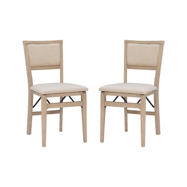 Featuring a convenient, folding design while still maintaining a chic style, these Beige Keira Folding Dining Chairs make for perfect extra seating. Bring them out for game nights, dinner parties, and holidays! Set includes two (2) dining chairs Each chair measures 20L x 17W x 32.7H in.; seat measures 19H in. Crafted with a wood and steel frame Tan finish Seat and back are upholstered in tan polyester fabric Foam fill Folding design Weight capacity: 275 lbs. No assembly required Not intended for commercial use Care: Dust with a soft, dry cloth. This item is available at Kirklands.com only, not available in stores. Please note: this item cannot be shipped to APO/FPO addresses. WARNING: This product can expose you to chemicals including DEHP, which are known to the state of California to cause cancer and birth defects or other reproductive harm. For more information go to www.P65Warnings.ca.gov.
