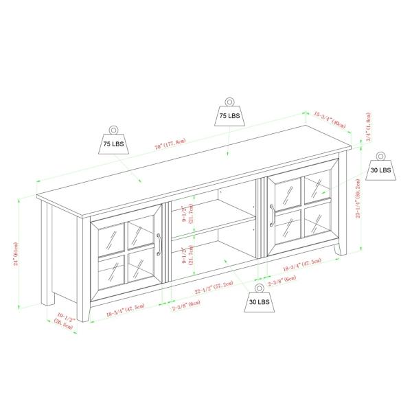 Transform your living room with our Birch Wood and Glass Door TV Stand. The stylish and spacious design gives you plenty of spots for storing your favorite movies and consoles. Media stand measures 70L x 16W x 20H in. Crafted of warp-resistant wood composite, durable laminate, and tempered glass Birch finish Weight: 90 lbs. Fits TV sizes up to 85 in. Full assembly required Not intended for commercial use Care: Dust with a soft, dry cloth. This item is available at Kirklands.com only, not available in stores. Please note: this item cannot be shipped to APO/FPO addresses. WARNING: Cancer and Reproductive Harm - For more information go to www.P65Warnings.ca.gov.