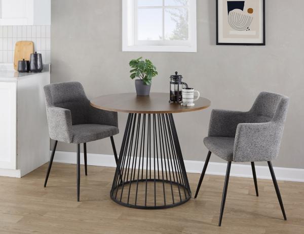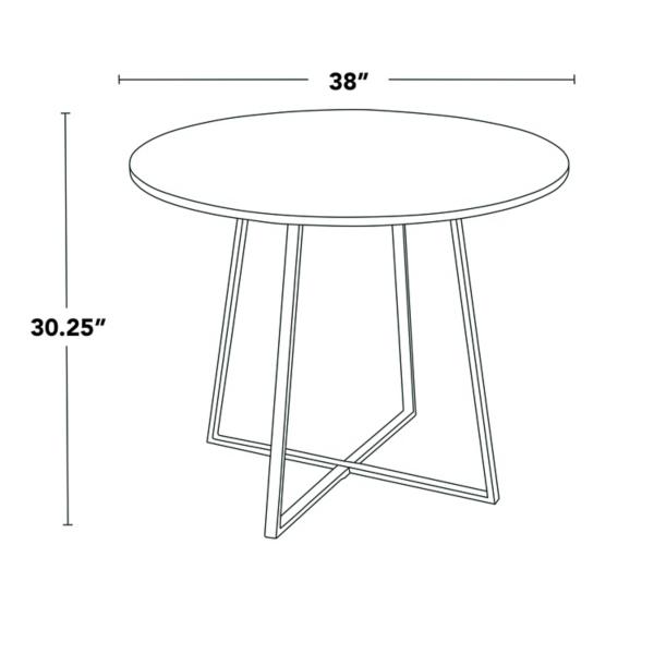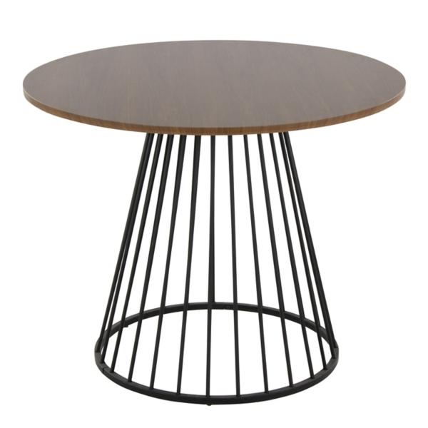 Embed modern style into your space with our Black and Brown Canary Cosmo Round Dining Table. The table’s understated color and design allow it to easily complement a variety of decor. Table measures 29.5H x 38 in. in diameter Crafted of metal and walnut wood Natural tabletop finish Black base finish Round shape Features a pedestal base Weight: 37.75 lbs. Assembly required; See Info & Guides below to view or print assembly instructions Not intended for commercial use Care: Dust with a soft, dry cloth. This item is available at Kirklands.com only, not available in stores. Please note: this item cannot be shipped to APO/FPO addresses.