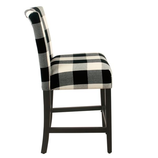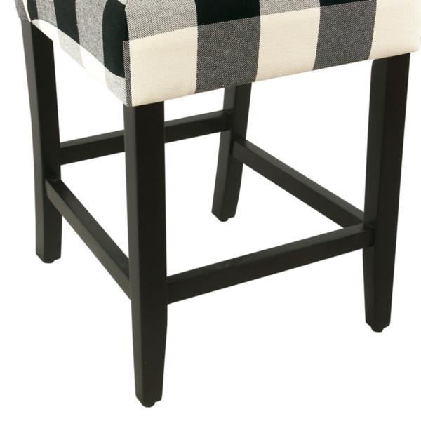 This Black and White Buffalo Check Counter Stool features a simple look and a trendy pattern. It's the perfect way to make your dining space a little bit cozier. You'll love the way it blends modern design with a rustic staple. Stool measures 24L x 19W x 39.5H in.; Seat height measures 25H in. Crafted with a solid wooden frame Black frame finish Seat and back upholstered in buffalo check patterned fabric Hues of black, gray, and white Weight capacity: 250 lbs. Some assembly required Not intended for commercial use Care: Spot clean only. This item is available at Kirklands.com only, not available in stores. Please note: this item cannot be shipped to APO/FPO addresses.