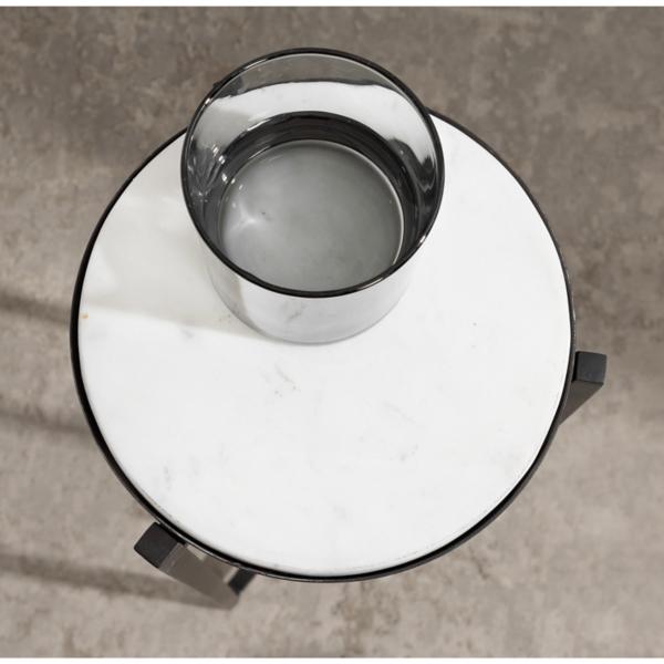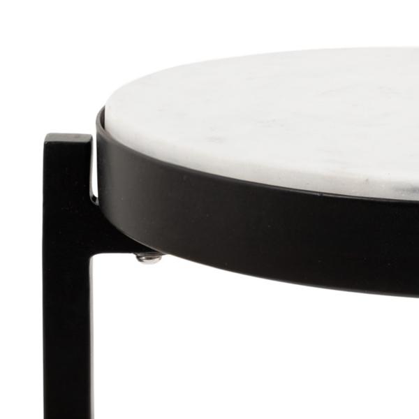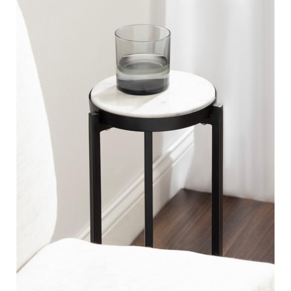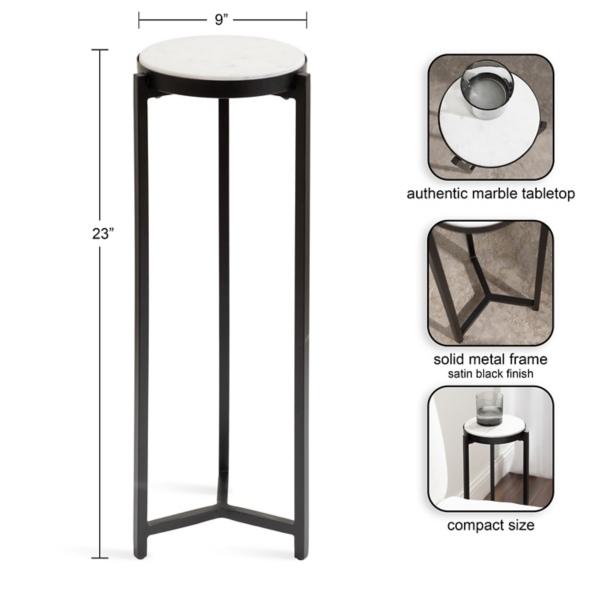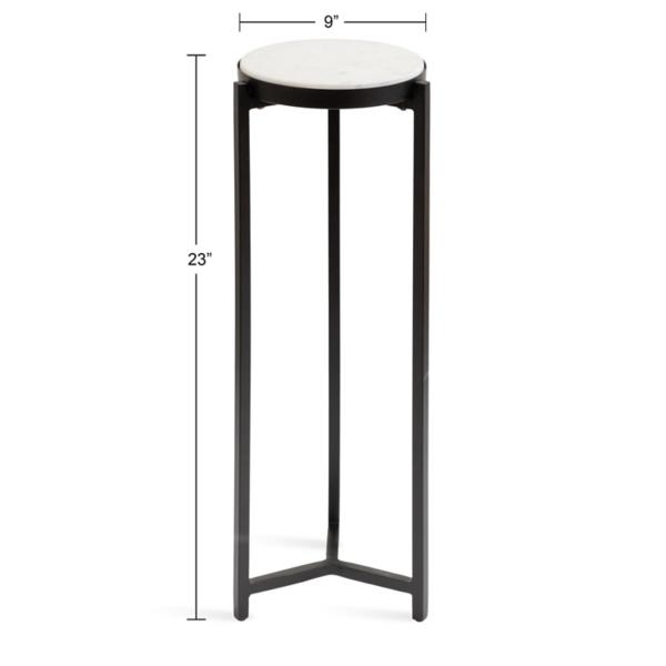This Black Angular Marble Accent Table is a sophisticated accent piece that brings elevated style and glamor to any space in your home! Inspired by modern design, this pedestal table features a frame with clean, simple lines and a black finish. Accent table measures 23H x 9 in. in diameter Crafted of metal and authentic marble Satin black frame finish White marble tapletop finish Features an angular leg design Compact size Weight capacity: 7 lbs.; weighs 4.78 lbs. No assembly required Not intended for commercial use Care: Dust with a soft, dry cloth. This item is available at Kirklands.com only, not available in stores. Please note: this item cannot be shipped to APO/FPO addresses. WARNING: Cancer and Reproductive Harm - For more information go to www.P65Warnings.ca.gov.