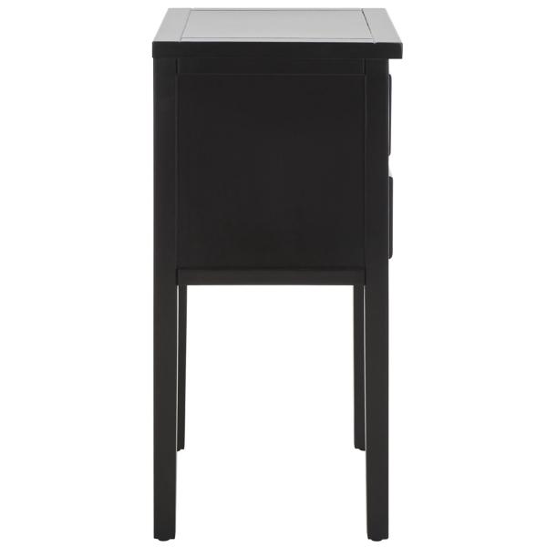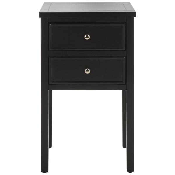 A French farmhouse take on a traditional end table, this Black Bayur Mirsade Traditional Accent Table makes a chic addition to any interior. Its sleek finish and silver drawer pulls complete the look. Overall dimensions Width: 16.9 in. Depth: 14.7 in. Height: 29.9 in. Crafted of bayur wood and metal Distressed gray finish Features two (2) drawers Silver drawer pulls Weight: 18.7 lbs. Weight capacity: 35 lbs. No assembly required Not intended for commercial use Care: Dust with a soft, dry cloth. This item is available at Kirklands.com only, not available in stores. Please note: this item cannot be shipped to APO/FPO addresses.