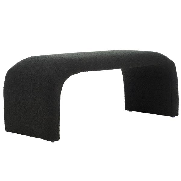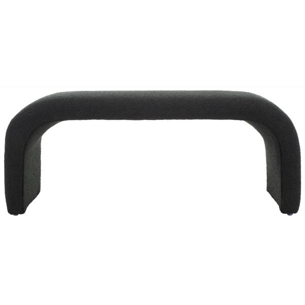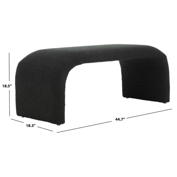 This Black Boucle Modern Lydia Bench brings a luxurious feel to modern minimalist spaces! Its lavishly comfortable black boucle fabric beautifully spotlights its boldly curved silhouette, seamlessly accenting any room’s color scheme. Bench measures 44.7W x 18.3D x 18.5H in. Crafted with a wood frame Upholstered in black boucle fabric and filled with high-density foam Features a curved design Waterfall sides Weight: 17 lbs. Weight capacity: 550 lbs. No assembly required Not intended for commercial use Care: Spot clean. This item is available at Kirklands.com only, not available in stores. Please note: this item cannot be shipped to APO/FPO addresses.