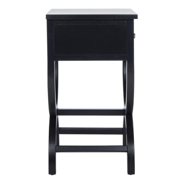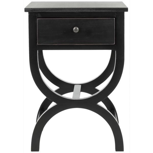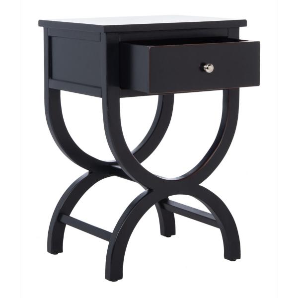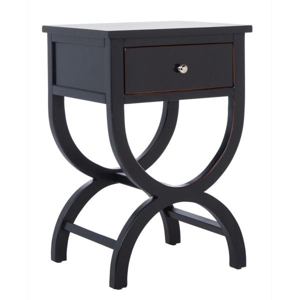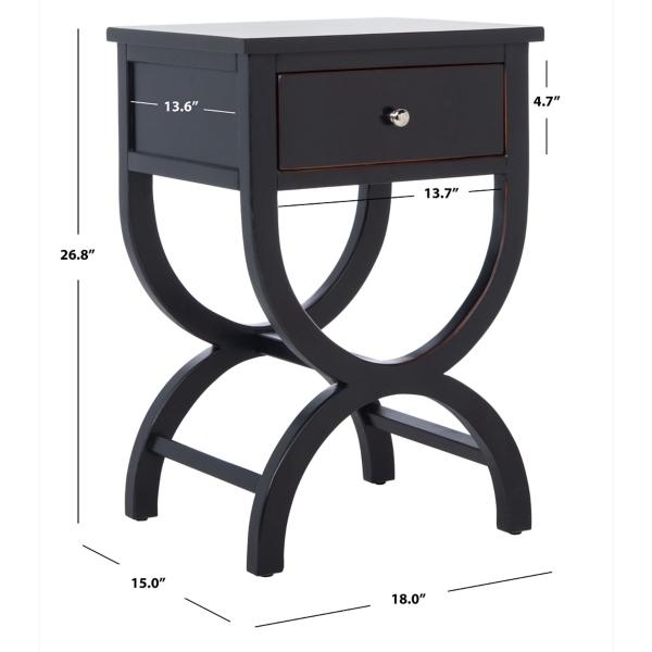This Black Contemporary Maxine Accent Table is the quintessential piece to give your decor a touch of modern charm. The perfect accent for any room, it provides discrete storage and revitalizes a classic silhouette! Overall dimensions Width: 18 in. Depth: 15 in. Height: 26.8 in. Crafted of pine wood Black finish Features one (1) drawer Modern curved base Silver metal drawer pull Weight: 15.4 lbs. Weight capacity: 25 lbs. No assembly required Not intended for commercial use Care: Dust with a soft, dry cloth./Spot clean only. This item is available at Kirklands.com only, not available in stores. Please note: this item cannot be shipped to APO/FPO addresses.