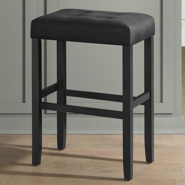 Elevate your kitchen with this Black Faux Leather Tufted Madison Bar Stool! This comfortable stool features sophisticated black faux leather with stylish tufting for a modern upgrade to your space. Stool measures 22W x 16D x 30H in. Crafted of wood Upholstered in PU leather with high-density foam fill Black wood finish Black faux leather finish Features a tufted design Weight capacity: 285 lbs. Assembly required; see Info & Guides in the drop down below to view or print assembly instructions Not intended for commercial use Care: Wipe with a soft, damp cloth. This item is available at Kirklands.com only, not available in stores. Please note: this item cannot be shipped to APO/FPO addresses.
