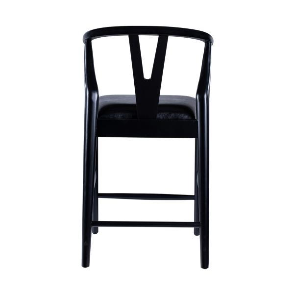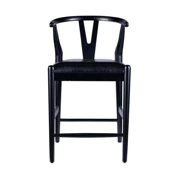 Elevate every meal with this Black Faux Leather Wishbone Counter Stool! This stool is crafted with comfort and style in mind, with soft faux leather and a plush cushion. You'll love the mid-century modern design! Counter stool measures 21.5W x 21.02D x 36.75H in.; seat height: 24 in. Crafted of wood Upholstered in black faux leather and filled with high-density foam Black finish Features a wishbone style backrest Weight: 20 lbs. Weight capacity: 300 lbs. Assembly required Not intended for commercial use Care: Wipe with a damp cloth. This item is available at Kirklands.com only, not available in stores. Please note: this item cannot be shipped to APO/FPO addresses.