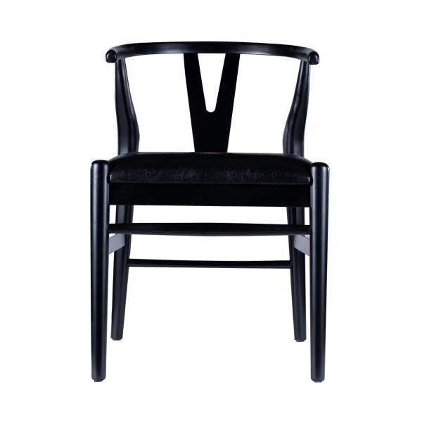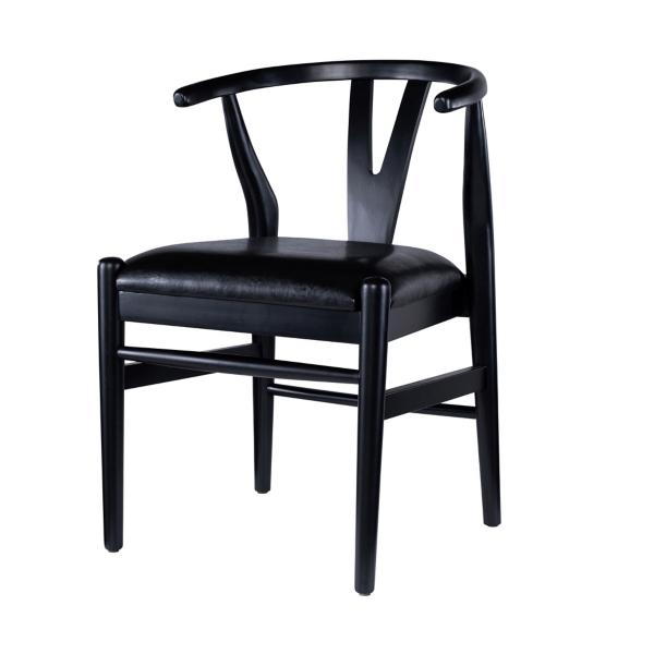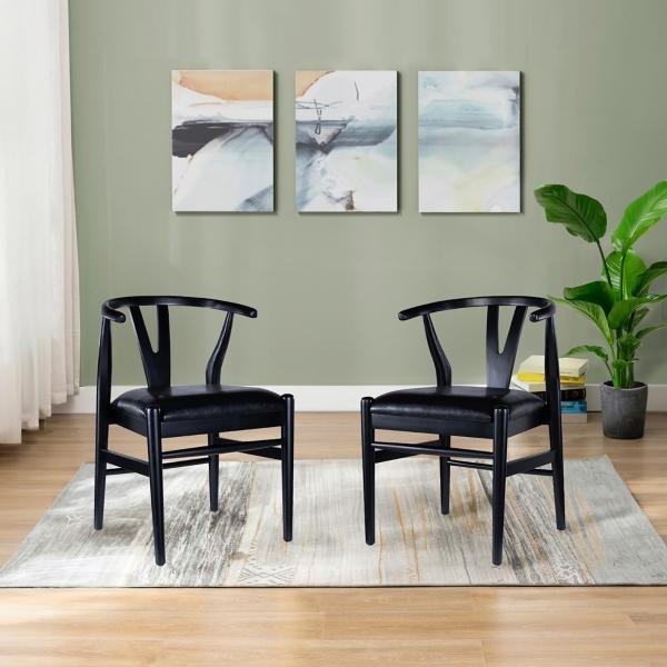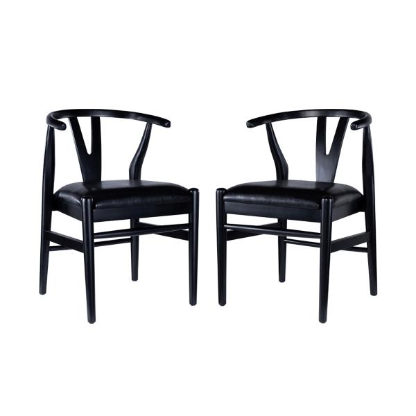 Elevate every meal with these Black Leather Wishbone Dining Chairs! These chairs are crafted with comfort and style in mind, with soft faux leather and plush cushions. You'll love their mid-century modern design! Set includes two (2) dining chairs Each chair measures 20.5W x 20.25D x 31.89H in.; seat height: 18 in. Crafted of wood Upholstered in black faux leather and filled with high-density foam Black finish Features a wishbone style backrest Weight capacity: 300 lbs. Assembly required Not intended for commercial use Care: Wipe with a damp cloth. This item is available at Kirklands.com only, not available in stores. Please note: this item cannot be shipped to APO/FPO addresses.