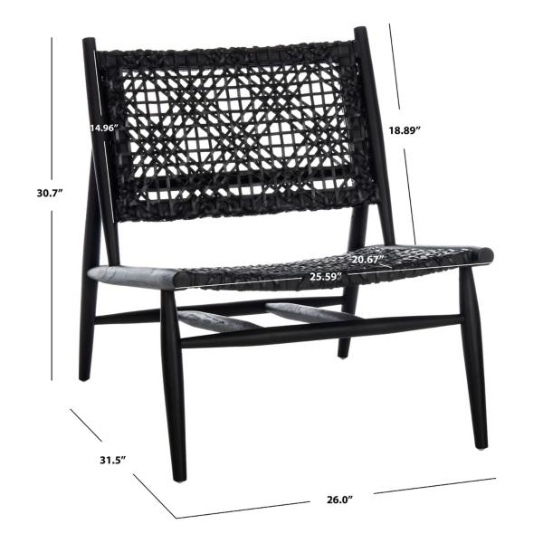 Transform your space with this Black Leather Woven Accent Chair! The woven leather seat and backrest paired with the low-profile design gives this chair a chic, Scandinavian-inspired look. It's perfect for effortlessly elevating your home! Chair measures 26W x 31.5D x 30.7H in.; seat height: 14.96 in. Seat measures 25.59W x 20.67D Crafted with a wood frame Features interlaced cowhide leather seat and backrest Black wood finish Black leather finish Weight: 18 lbs. Weight capacity: 275 lbs. lbs. No assembly required Not intended for commercial use Care: Dust weekly using a soft, clean cloth slightly dampened with distilled water. Blot spills immediately with a soft, clean absorbent dry cloth.. This item is available at Kirklands.com only, not available in stores. Please note: this item cannot be shipped to APO/FPO addresses.