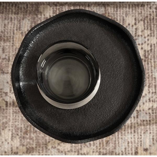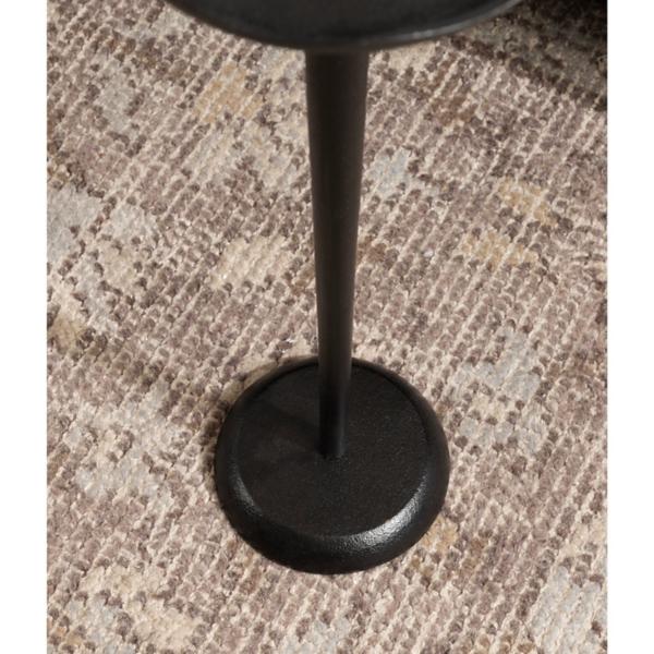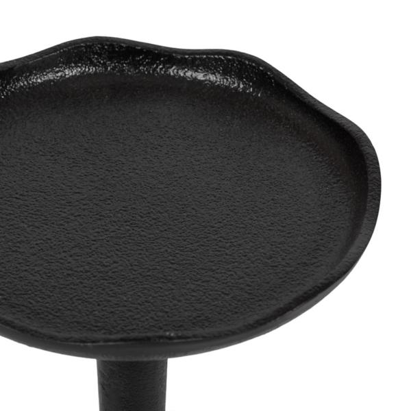 Decorate your home with the eye-catching beauty of this Black Metal Alicia Accent Table! Handcrafted in India, this round drink table is made with sandcast aluminum, giving it a distinct deckled edge and a rugged texture. Table measures 22H x 8 in. in diameter Crafted of aluminum Black finish Tapered base Round top with wavy, deckled edge Sandcasting process results in a rugged texture Weight: 4.6 lbs. Weight capacity: 7 lbs. Assembly required Easy assembly, no tools required Not intended for commercial use Care: Dust with a soft, dry cloth. This item is available at Kirklands.com only, not available in stores. Please note: this item cannot be shipped to APO/FPO addresses. WARNING: Cancer and Reproductive Harm - For more information go to www.P65Warnings.ca.gov.