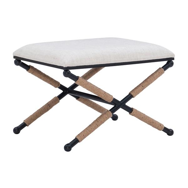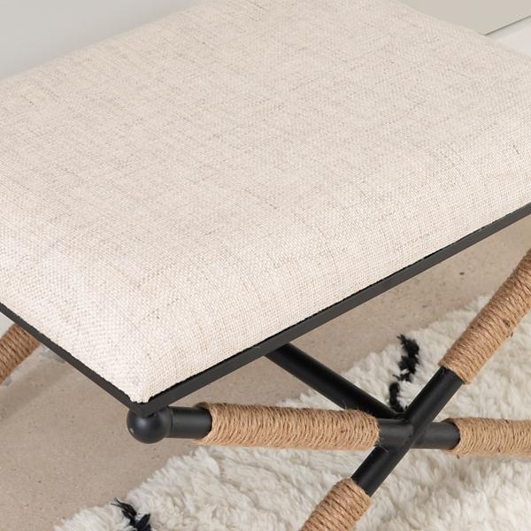 This Black Metal Legs Bench with Rope Detail features a simple, low-profile, and neutral design that will blend in perfectly with practically any decor style. It’ll soon become your favorite part of your morning routine! Bench measures 24L x 17.4W x 18.5H in.; Seat height measures 17H in. Black finish legs Rope details on legs Seat upholstered in neutral fabric X-side frame design Weight capacity: 275 lbs. No assembly required Not intended for commercial use Care: Spot clean only. This item is available at Kirklands.com only, not available in stores. Please note: this item cannot be shipped to APO/FPO addresses. WARNING: This product can expose you to chemicals including Di-(2-ethl hexyl) phthalate which is known to the state of California to cause cancer and birth defects or other reproductive harm. For more information go to www.P65Warnings.ca.gov