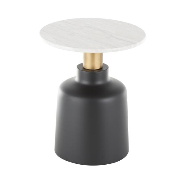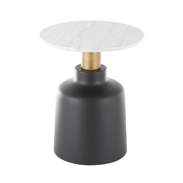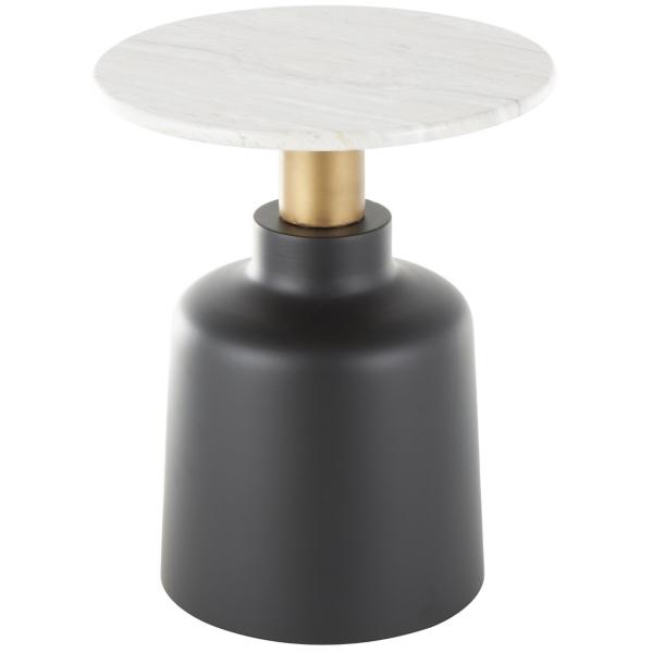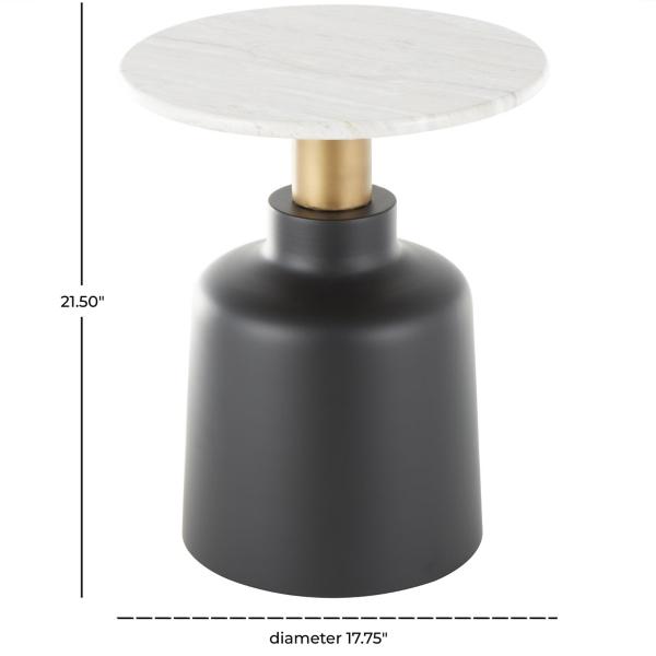 Elevate your space with this Black Metal & Marble Pedestal Accent Table! This accent table feature sleek lines, chic touches, and eye-catching pedestal design to bring sophistication and elegance to your home. Accent table measures 21.5H x 17.75 in. in diameter Crafted of metal and MDF Black and gold metal finish Marble tabletop finish Features a pedestal design Weight: 11.5 lbs. Weight capacity: 100 lbs. No assembly required Not intended for commercial use Care: Dust with a soft, dry cloth. This item is available at Kirklands.com only, not available in stores. Please note: this item cannot be shipped to APO/FPO addresses.