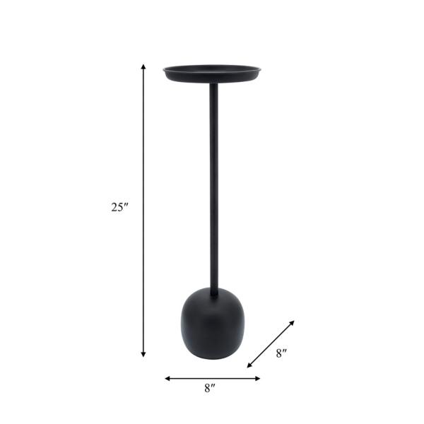 The chic and elegant design of our Black Metal Orb Base Accent Table will deliver contemporary flair to your entertaining space! Its unique shape is sure to dazzle your visitors. Accent table measures 25H x 8 in. in diameter Crafted of metal Black finish Round tabletop Orb base Weight: 4.8 lbs. No assembly required Not intended for commercial use Care: Dust with a soft, dry cloth. This item is available at Kirklands.com only, not available in stores. Please note: this item cannot be shipped to APO/FPO addresses.