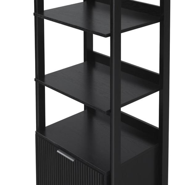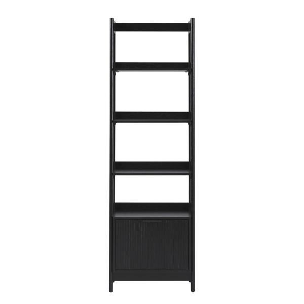 If you’re looking for storage that’s as stylish as it is functional, this Black Reeded Wood Holmes Narrow Bookcase is at your service! This bookshelf is designed with small spaces in mind, maximizing vertical storage while minimizing its footprint. Bookcase measures 22W x 16.75D x 70H in. Crafted of warp-resistant MDF and laminate Black finish Features four (4) shelves and one (1) drawer Accented with a reeded drawer front Weight: 73 lbs. Assembly required Not intended for commercial use Care: Dust with a soft, dry cloth. This item is available at Kirklands.com only, not available in stores. Please note: this item cannot be shipped to APO/FPO addresses.