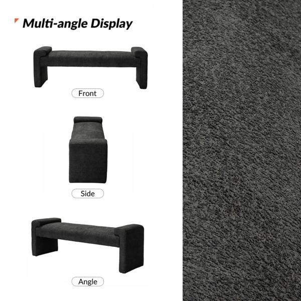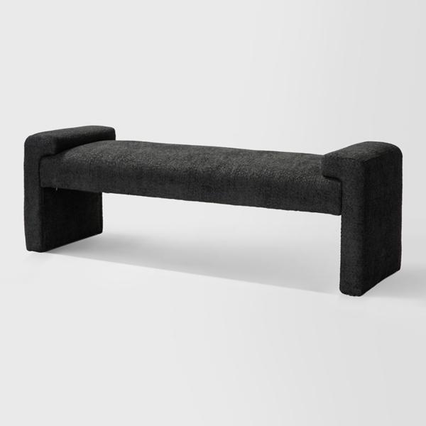 This Black Severin Upholstered Bench is perfect for incorporating additional seating into any space! It's modern design and soft, textured upholstery is ideal for your living room, bedroom, or entryway. Bench measures 58.5W x 17D x 20H in. Crafted with a wood frame Upholstered in black polyester and filled with high-density foam Features an outrigger design with arm trays Seat measures 45W x 17D x 18H in. Weight: 34 lbs. Weight capacity: 250 lbs. Assembly required Not intended for commercial use Care: Spot clean. This item is available at Kirklands.com only, not available in stores. Please note: this item cannot be shipped to APO/FPO addresses.