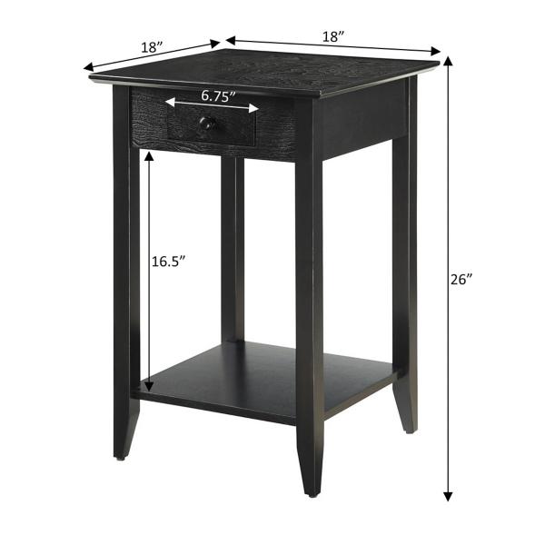 Whether placed in your living room, bedroom, or hallway, this Black Single Drawer Square Accent Table easily adds style and storage to any space. It's ideal for display decor and keeping your home clutter free! Table measures 18L x 18W x 26H in. Crafted of solid pine wood, wood composite, and ash veneer Black finish Features one (1) drawer and one (1) shelf Square shape Weight: 18 lbs. Shelf weight capacity: 20 lbs. Assembly required Not intended for commercial use Care: Dust with a soft, dry cloth. This item is available at Kirklands.com only, not available in stores. Please note: this item cannot be shipped to APO/FPO addresses.