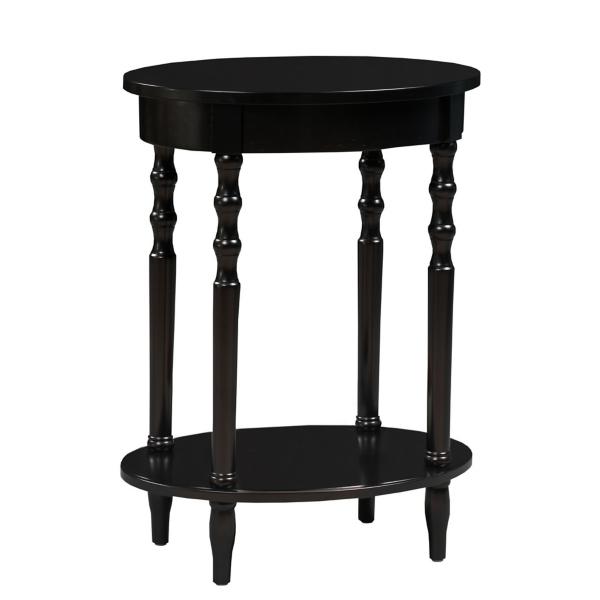 Refresh your living room with this Black Spindle Legs Oval Accent Table! This versatile accent table features traditional spindle legs and a unique oval shape, perfect for elevating your space with a classic touch. Accent table measures 20.5W x 15D x 24H in. Crafted of solid wood and manufactured wood Black finish Oval shape Features spindle leg design Two (2) tiers of shelving Weight: 16 lbs. Weight capacity: 65 lbs. Assembly required Not intended for commercial use Care: Wipe with a soft, dry cloth. This item is available at Kirklands.com only, not available in stores. Please note: this item cannot be shipped to APO/FPO addresses.