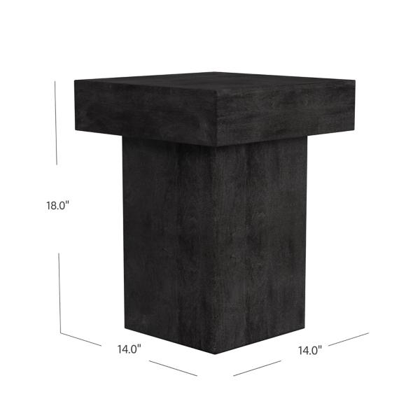 Refresh your living room with a contemporary touch! With a distressed texture and blocky shape, our Black Square Padula Pedestal Accent Table will look lovely by your sofa! Overall dimensions Width: 14 in. Depth: 14 in. Height: 18 in. Crafted of wood Textured black finish Square shape Weight capacity: 25 lbs. No assembly required Not intended for commercial use Care: Dust with a soft, dry cloth. This item is available at Kirklands.com only, not available in stores. Please note: this item cannot be shipped to APO/FPO addresses.