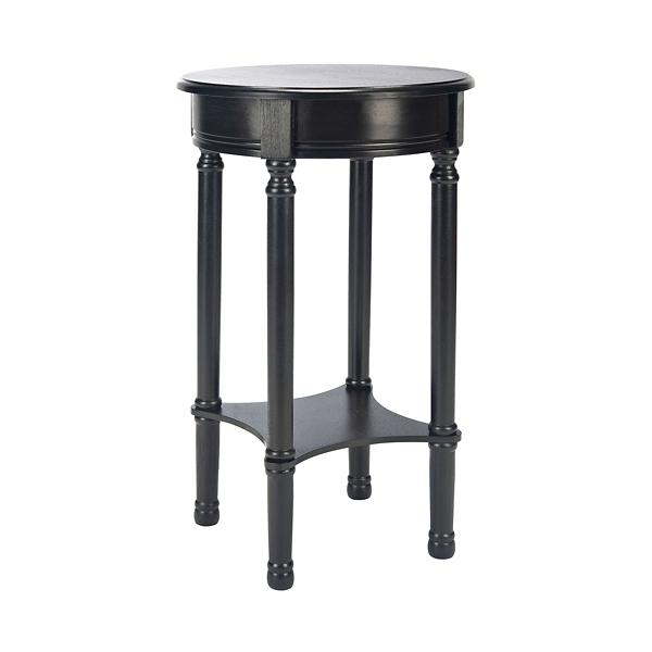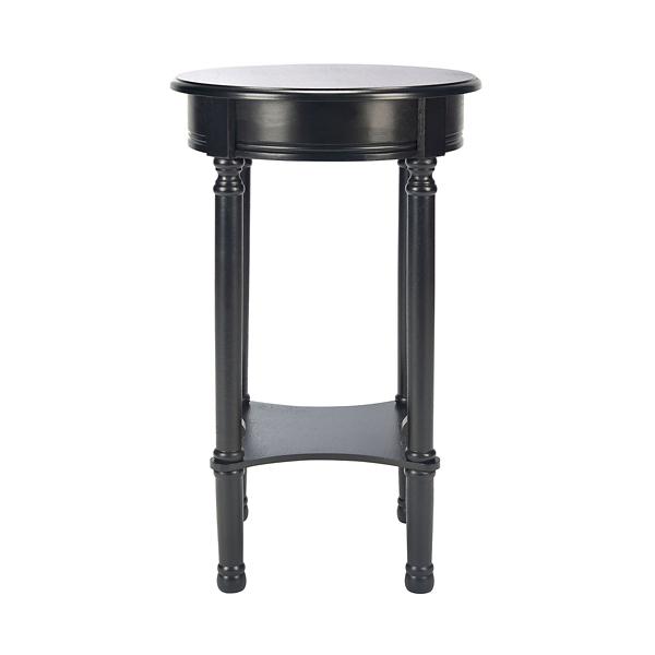 Freshen up your living space with simple, effortless charm using this Black Tegan Round Accent Table. Featuring classically turned legs and a sleek black finish, this piece exudes timeless elegance. Table measures 26H x 15.8 in. in diameter Crafted of wood Black finish Round shape Turned legs Features a bottom shelf Weight capacity: 40 lbs. Assembly required Not intended for commercial use Care: Dust with a soft, dry cloth. This item is available at Kirklands.com only, not available in stores. Please note: this item cannot be shipped to APO/FPO addresses. WARNING: This product can expose you to chemicals including wood dust which is known to the state of California to cause cancer and birth defects or other reproductive harm. For more information go to www.P65Warnings.ca.gov.