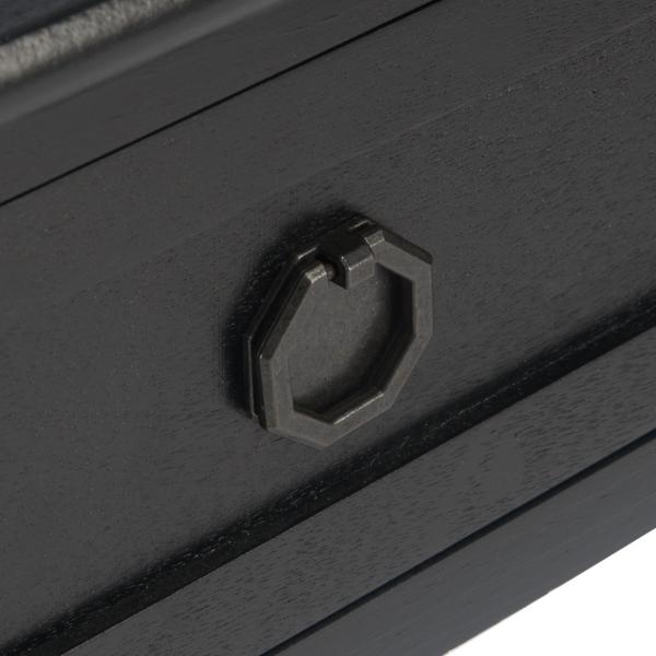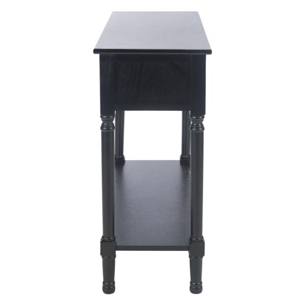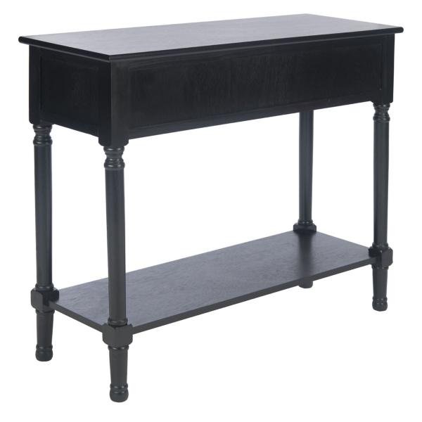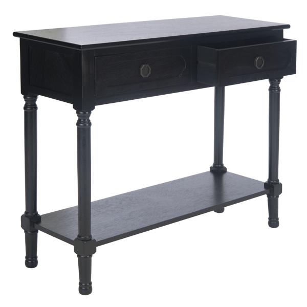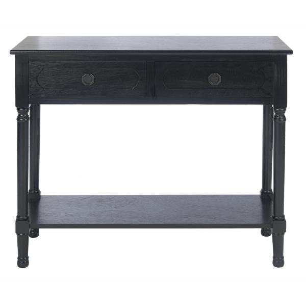 Elevate your space with this Black Wood Allura Console Table! Featuring traditional carved details and a black finish, this storage console table is perfect for modern farmhouse style entryways or living rooms! Console table measures 35.5W x 13D x 29.5H in. Crafted of pine Black finish Features two (2) drawers Weight: 31 lbs. Weight capacity: 40 lbs. Assembly required Not intended for commercial use Care: Dust with a soft, dry cloth. This item is available at Kirklands.com only, not available in stores. Please note: this item cannot be shipped to APO/FPO addresses.