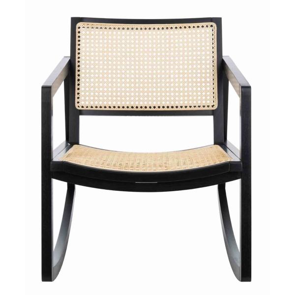 The Black Wood and Natural Rattan Rocking Chair will bring modern coastal character into your space. Its uniquely curved frame and contrasting finish results in a sophisticated look. Chair measures 22.8L x 34.3W x 30.5H in. Crafted of wood and rattan Black wood frame finish Natural rattan seat and backrest Rocking chair design Weight capacity: 275 lbs. Assembly required Not intended for commercial use Care: Dust with a soft, dry cloth. This item is available at Kirklands.com only, not available in stores. Please note: this item cannot be shipped to APO/FPO addresses. WARNING: This product can expose you to chemicals including wood dust which is known to the state of California to cause cancer and birth defects or other reproductive harm. For more information go to www.P65Warnings.ca.gov.