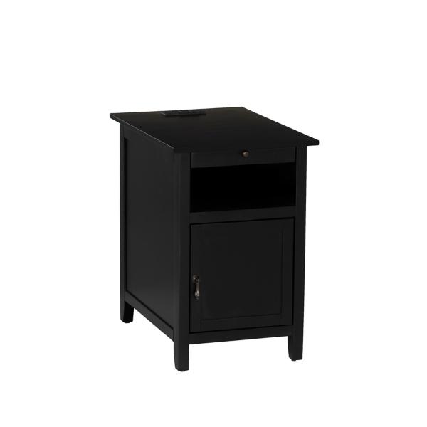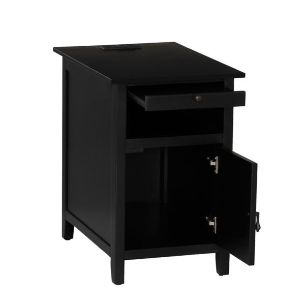 Elevate your space with this functional and stylish Black Wood Birkdale Charging End Table! Its built-in charging station provides convenient charging for your electronic devices, keeping them powered up and within reach. Accent table measures 14W x 22D x 24H in. Crafted of rubberwood and birch veneer Black finish Features a pull-out tray, an open shelf, and lower cabinet space Integrated charging station with two (2) plug-in outlets, a USB port, and USB-C port Weight: 38 lbs. Weight capacity: 75 lbs. Assembly required Not intended for commercial use Care: Wipe clean with a soft damp cloth. This item is available at Kirklands.com only, not available in stores. Please note: this item cannot be shipped to APO/FPO addresses.