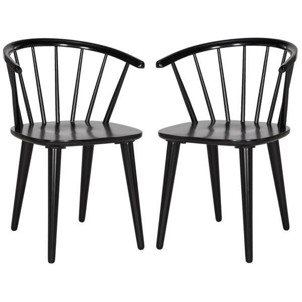 Our Black Wood Curved Spindle Dining Chair Set is perfect for a transitional touch to any home! Inspired by classic design, these chairs are sure to complement every style, from modern to traditional, farmhouse to boho chic. Grab a set or two to instantly elevate your dining room! Set includes two (2) chairs Each chair measures 21.3L x 20.5W x 29.9H in.; seat height: 17.9 in. Crafted of rubberwood Black finish Features backrest spindles and splayed tapered legs Weight capacity: 225 lbs. No assembly required Care: Dust regularly with a soft, dry cloth. This item is available at Kirklands.com only, not available in stores. Please note: this item cannot be shipped to APO/FPO addresses. WARNING: This product can expose you to chemicals including wood dust, which is known to the state of California to cause cancer and birth defects or other reproductive harm. For more information go to www.P65Warnings.ca.gov.