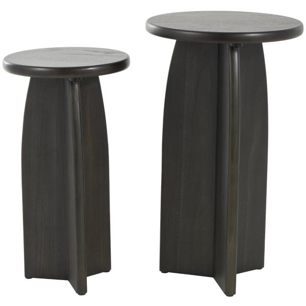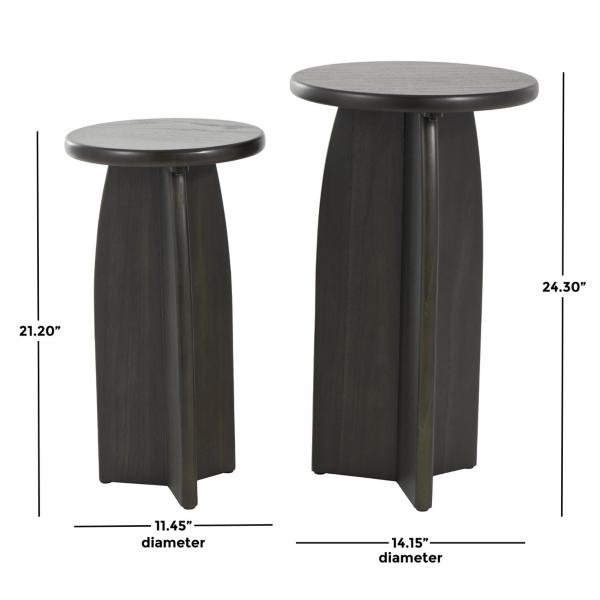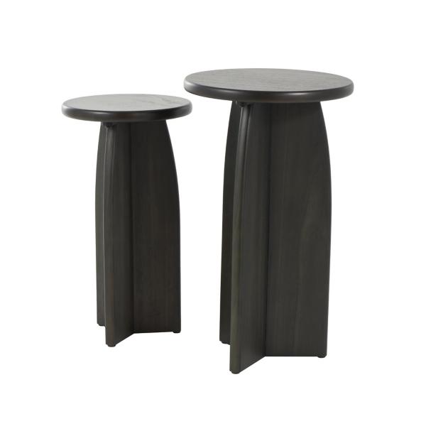 Add dimension to your space with these Black Wood Modern Accent Tables! These unique accent tables are perfect for small spaces. You'll love the look of the black finish! Set includes two (2) tables Large table measures 24.3H x 14.10 in. in diameter Small table measures 21.2H x 11.40 in. in diameter Crafted of rubberwood Black finish Round shape Modern base design No assembly required Not intended for commercial use Care: Wipe with a soft, dry cloth. This item is available at Kirklands.com only, not available in stores. Please note: this item cannot be shipped to APO/FPO addresses.