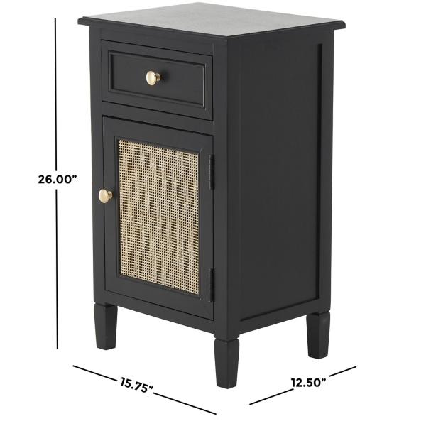 Keep even your small spaces organized with this Black Wood & Natural Rattan Small Cabinet! From your living space to your bathroom, this cabinet will add style to your home while storing your essentials. Cabinet measures 15.75W x 12.5D x 26H in. Crafted of wood Black finish Features one (1) drawer and one (1) interior shelf Accented with rattan door inset Weight: 15 lbs. Weight capacity: 100 lbs. Some assembly required Not intended for commercial use Care: Dust with a soft, dry cloth. This item is available at Kirklands.com only, not available in stores. Please note: this item cannot be shipped to APO/FPO addresses.