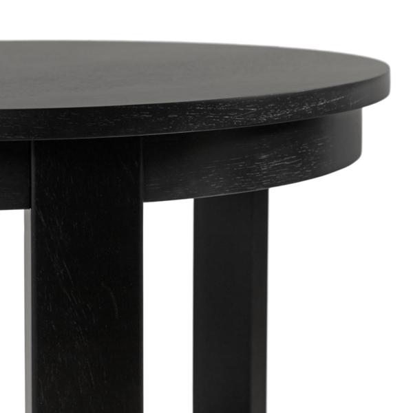 Showcase your transitional-inspired style with this Black Wood Round Ford Accent Table! A careful blend of solid wood and resilient wooden material was used to create this beautiful coffee table, creating a statement that is as durable as it is beautiful. Accent table measures 24H x 22 in. in diameter Crafted of solid wood and MDF Satin black finish Features a round shape Includes one (1) lower shelf for storage Weight capacity: 50 lbs.; weighs 18.74 lbs. Minimal assembly required Not intended for commercial use Care: Dust with a soft, dry cloth. This item is available at Kirklands.com only, not available in stores. Please note: this item cannot be shipped to APO/FPO addresses. WARNING: Cancer and Reproductive Harm - For more information go to www.P65Warnings.ca.gov.