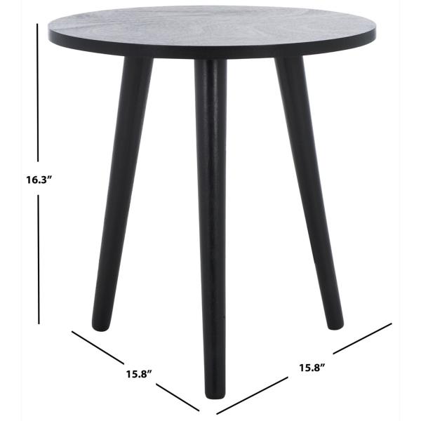 Embrace the Danish tradition of hygge, the art of comfortable living with friends and family, with this Black Wood Round Scandinavian End Table! Crafted with a pine wood blend, its black finish is perfect for blending with any style of decor. End table measures 16.3H x 15.8 in. in diameter Crafted of pine wood and MDF Black finish Features three angled legs Round shape Weight: 4.4 lbs. Weight capacity: 30 lbs. Assembly required; see Info & Guides in the drop down below to view or print assembly instructions Not intended for commercial use Care: Wipe with a soft, dry cloth. This item is available at Kirklands.com only, not available in stores. Please note: this item cannot be shipped to APO/FPO addresses.