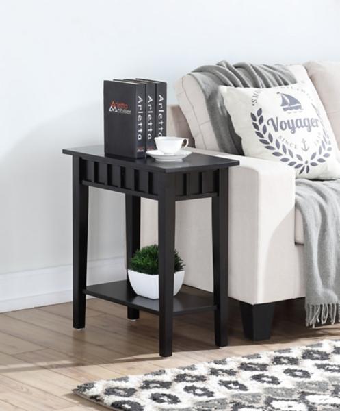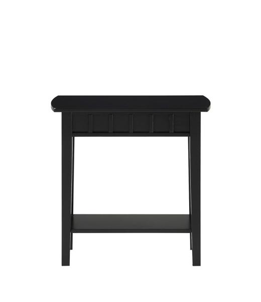 From modern to farmhouse, this Black Wood Slat Accent Table can complement any décor style! Its classic yet sleek design is perfect for upgrading your space. The lower shelf provides storage space or a way to display your favorite home decor! Accent table measures 24W x 12D x 24H in. Crafted of solid rubberwood, manufactured wood, and non-lead-based paint Black finish Features two (2) tiers of shelving Slatted apron panes Tapered legs Weight: 18 lbs. Weight capacity: 40 lbs. Assembly required; see Info & Guides in the drop down below to view or print assembly instructions Not intended for commercial use Care: Wipe with a soft, dry cloth. This item is available at Kirklands.com only, not available in stores. Please note: this item cannot be shipped to APO/FPO addresses.