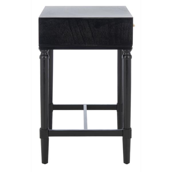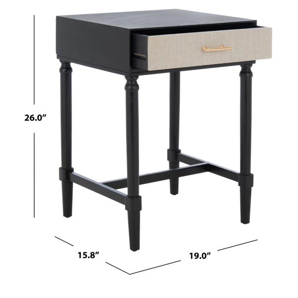 Classic elegance gets a fresh new look in this Black Wood Stella 1-Drawer End Table! The gracefully turned legs are beautifully juxtaposed with the chic gold metal hardware. Its sleek black finish ensures this table perfectly accents any room’s color scheme! End table measures 19W x 15.8D x 26H in. Crafted of pine wood and MDF Black finish Features one (1) drawer Gray drawer front Antique gold metal drawer pull Drawer measures 17.1W x 9.8D x 3.6H in. Weight: 17.6 lbs. Weight capacity: 40 lbs. Assembly required; see Info & Guides in the drop down below to view or print assembly instructions Not intended for commercial use Care: Wipe with a soft, dry cloth. This item is available at Kirklands.com only, not available in stores. Please note: this item cannot be shipped to APO/FPO addresses.