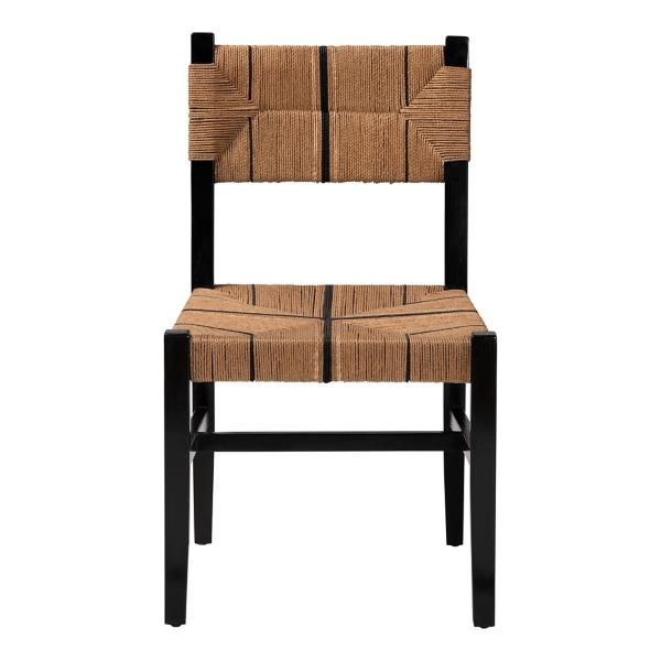 Elevate your kitchen or dining space with this Black Wood Woven Prita Dining Chair! This dining chair combines style and function to bring elegance and comfort to your home. Chair measures 20.20W x 19D x 34H in. Crafted of solid mahogany wood Black wood finish Features geometric loom weaving for ergonomic seating Angled backrest Tapered legs Seat measures 19W x 19D in. No assembly required Not intended for commercial use Care: Wipe with a soft, dry cloth. This item is available at Kirklands.com only, not available in stores. Please note: this item cannot be shipped to APO/FPO addresses.
