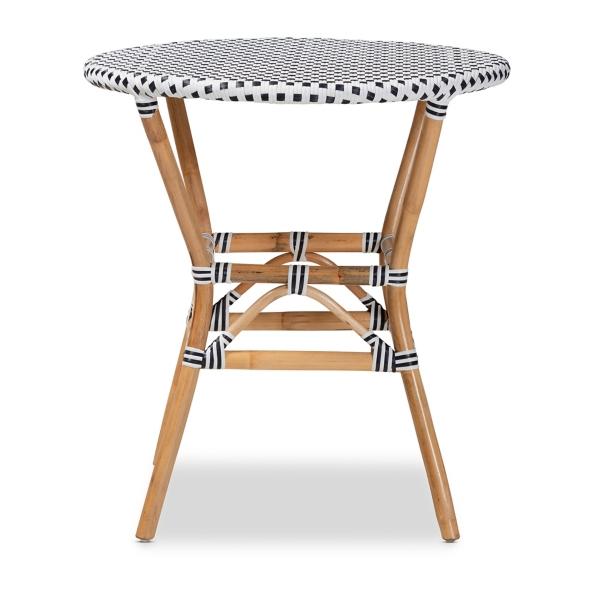 Create a charming breakfast nook in your home with this Black Woven Rattan French Bistro Dining Table. Its contrasting colors and unique frame make an eye-catching statement! Table measures 30H x 28 in. in diameter Crafted of rattan and plastic Natural base finish Black and white tabletop finish Rattan wrapped base Woven tabletop design Round shape No assembly required Not intended for commercial use Care: Dust with a soft, dry cloth. This item is available at Kirklands.com only, not available in stores. Please note: this item cannot be shipped to APO/FPO addresses.
