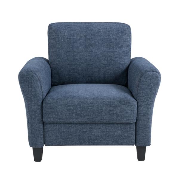 Bring a pop of color and comfort to your home with this Blue Microfiber Walter Accent Chair! Featuring soft blue upholstery and a classic armchair design, you’ll love this transitional style chair in your living room, bedroom, or office. Overall dimensions Width: 35.4 in. Depth: 31.5 in. Height: 32.7 in. Seat dimensions Width: 22.8 in. Depth: 20.5 in. Height: 19 in. Crafted with a wood frame Upholstered in microfiber polyester and filled with high-density foam Black leg finish Blue upholstery finish Features a classic rolled arm design Weight: 52.8 lbs. Weight capacity: 250 lbs. Some assembly required Not intended for commercial use Care: Spot clean. This item is available at Kirklands.com only, not available in stores. Please note: this item cannot be shipped to APO/FPO addresses.