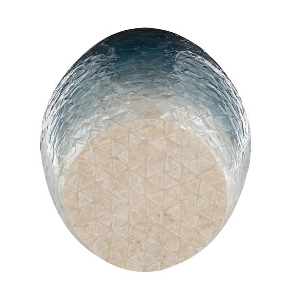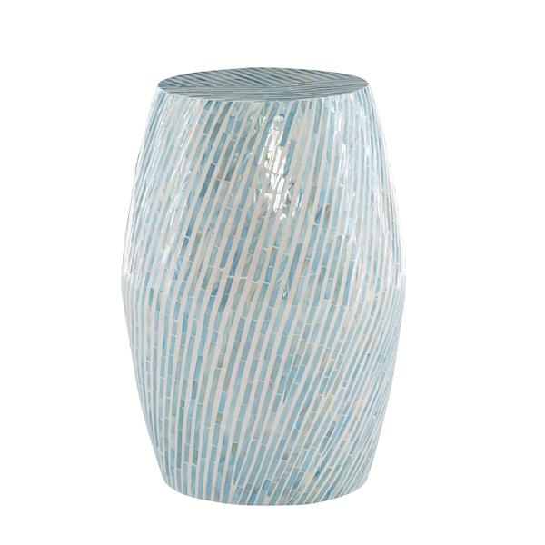Our Blue Ombre Mosaic Capiz Shell Drum End Table is the perfect addition to your living room. You’ll love the slight shimmer of this stunning accent table. Table measures 13.75L x 13.75W x 19.75H in. Crafted of capiz shell and wood Blue ombre finish Mosaic design Drum shape Weight: 15.44 lbs. No assembly required Not intended for commercial use Care: Dust with a soft, dry cloth. This item is available at Kirklands.com only, not available in stores. Please note: this item cannot be shipped to APO/FPO addresses.