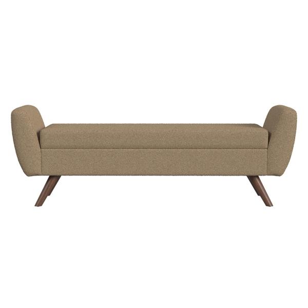 Use this Brown Boucle Modern Storage Bench to keep your home organized with style! You'll love how the hidden storage compartment can hold shoes by the front door, blankets by the bed, or anything you want to keep tucked away. Bench measures 60W x 18D x 20.9H in. Crafted with a wood frame Upholstered in polyester and filled with high-density foam Walnut wood finish Brown boucle upholstery finish Features a hidden storage compartment Weight: 50.6 lbs. Weight capacity: 300 lbs. Assembly required Not intended for commercial use Care: Spot clean. This item is available at Kirklands.com only, not available in stores. Please note: this item cannot be shipped to APO/FPO addresses.