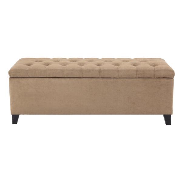 With tufted accents, our Brown Button Tufted Storage Bench is the perfect fit for any space and any style! Its classic and chic design gives this versatile bench an endless amount of styling options! Bench measures 49L x 19.25W x 18.5H in. Crafted with a sturdy, wooden frame High-density foam filling Espresso finish legs Upholstered in a sand colored soft fabric Features an interior storage compartment Button-tufted accents Weight capacity: 300 lbs. No assembly required Not intended for commercial use Care: Spot clean only. This item is available at Kirklands.com only, not available in stores. Please note: this item cannot be shipped to APO/FPO addresses. WARNING: Cancer and Reproductive Harm - For more information go to www.P65Warnings.ca.gov.