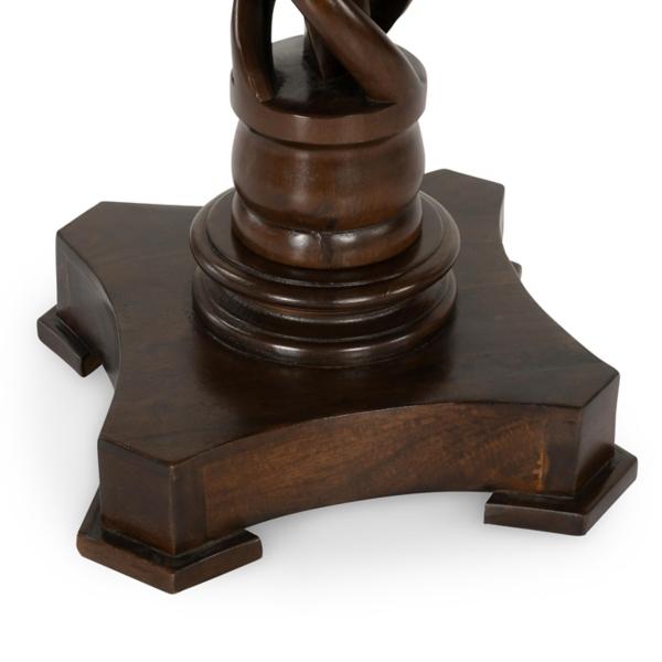 Our Brown Carved Pedestal Base Mango Wood Accent Table will captivate your guests with its elegant design! Feature this versatile in your living room or entryway. Table measures 30H x 30 in. in diameter Crafted of mango wood Mahogany finish Round shape Features a hand-carved pedestal base Weight: 40 lbs. No assembly required Not intended for commercial use Care: Dust with a feather duster, wipe with a damp cloth, and clean spills immediately. Use coasters/trivets to protect surfaces. Do not use: Silicone-based polishes, cleaners, solvents, or abrasives. Avoid heat and direct sunlight. This item is available at Kirklands.com only, not available in stores. Please note: this item cannot be shipped to APO/FPO addresses.