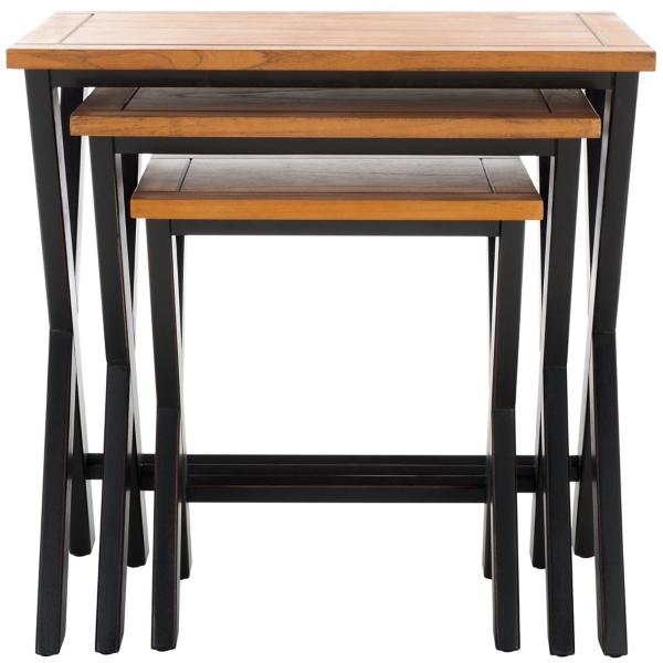 Contemporary and classic, the Brown Elm Loretta Nesting End Tables are a wonderful small space accessory! Made from elm and pine in black and oak finishes, they’re stylish and functional for snacks and drinks at parties or when the family gathers to watch TV. Set includes three (3) end tables Large table measures 24.4W x 17D x 23.8H in. Medium table measures 20.1W x 15D x 21.3H in. Small table measures 15.7W x 13D x 18.1H in. Crafted of elm wood and pine wood Oak tabletop finish Distressed black base finish Features a nesting design X-shaped base Weight: 20 lbs. Weight capacity: 30 lbs. No assembly required Not intended for commercial use Care: Wipe with a soft, dry cloth. This item is available at Kirklands.com only, not available in stores. Please note: this item cannot be shipped to APO/FPO addresses.