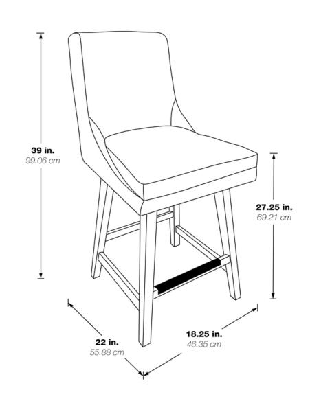 Elevate your kitchen with this Brown Faux Leather Alli Swivel Counter Stool! With a sleek silhouette and soft faux leather upholstery, this counter stool is the perfect blend of style and comfort. Counter stool measures 18.25W x 22D x 39H in.; seat height: 27.25 in. Crafted with a wood frame Upholstered in brown faux leather with high-density foam Dark walnut wood finish Features 360 degree swivel capability Weight: 30 lbs. Weight capacity: 250 lbs. Assembly required Not intended for commercial use Care: Wipe with a soft, dry cloth. This item is available at Kirklands.com only, not available in stores. Please note: this item cannot be shipped to APO/FPO addresses.